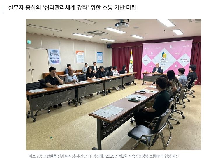 제목 | 마포구시설관리공단, 신임 한일용 이사장과 지속가능경영 추진단(TF) 상견례 | |||||