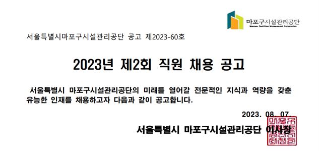 2023년 제2회 직원 채용 공고