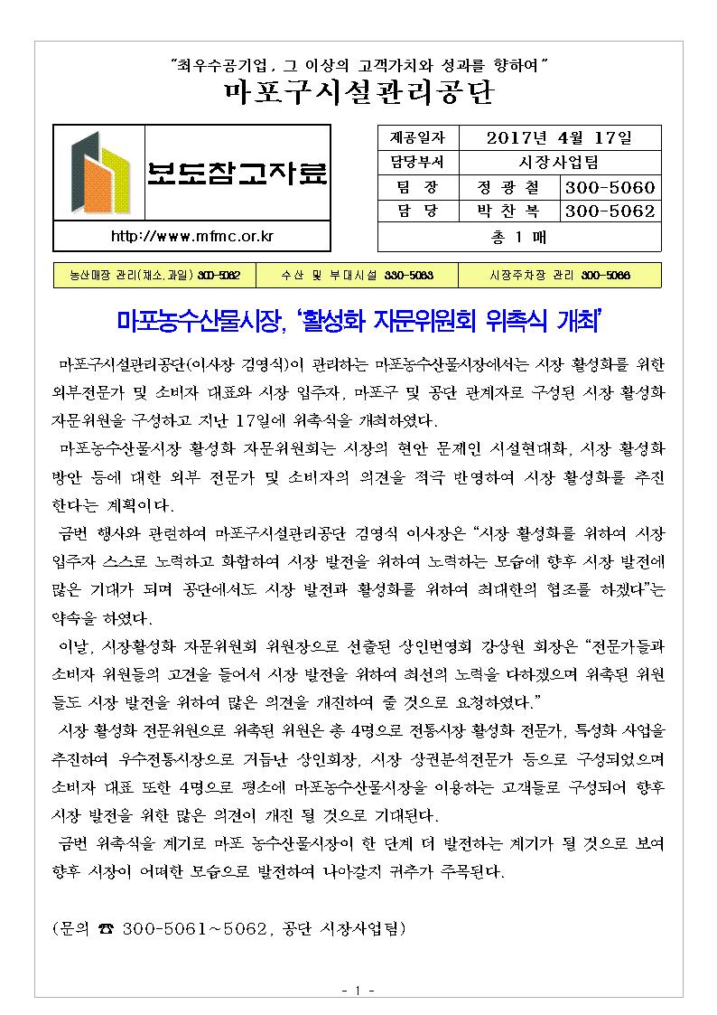 마포농수산물시장 활성화 자문위원 위촉식 개최