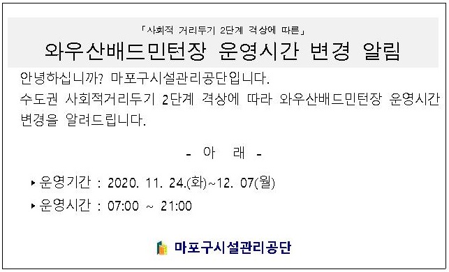 와우산배드민턴장 운영시간 변경 알림