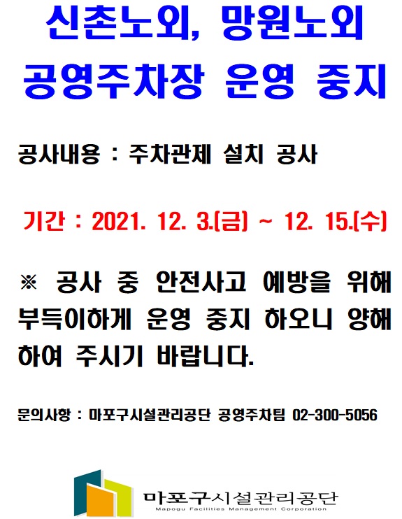 신촌 및 망원 노외 공영주차장 운영중지