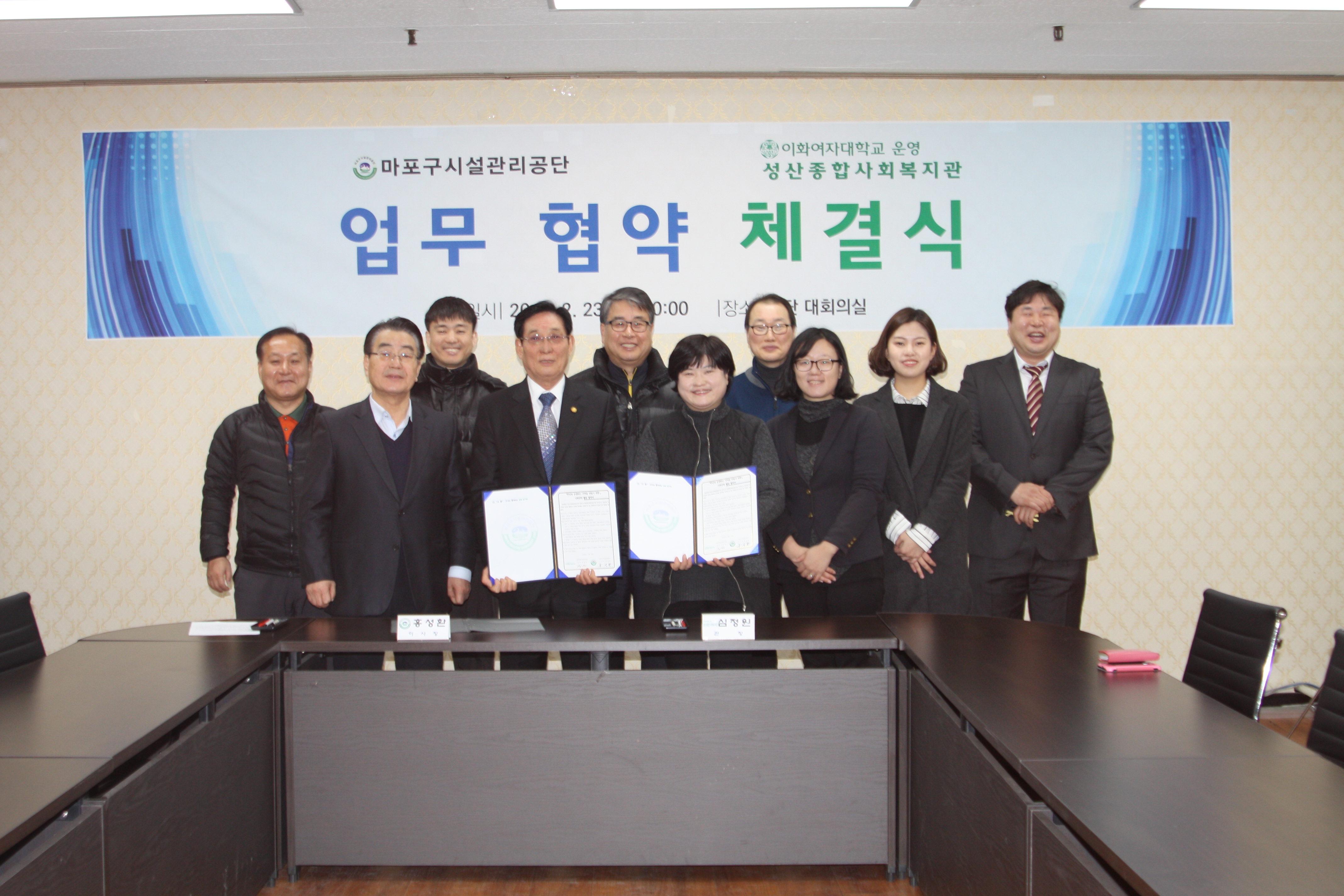 2016. 2. 23에 공단은 성산종합사회복지관과 업무 협약을 체결하였습니다. |