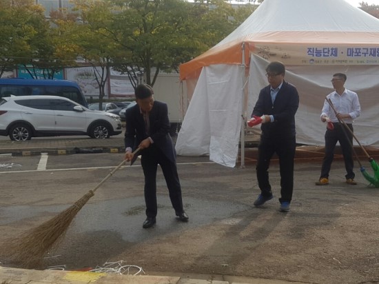 먹거리 행사장 물청소를 포함하여 대청소 실시 |