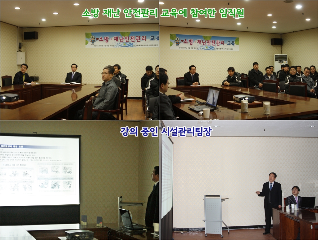 _ 3월 15일 마포구시설관리공단 2층 교육장에서 임직원 재난안전관리 교육이 실시되었다. 김평전 이사장과 김문태 상임이사를 포함한 임직원 50여명이 참여하여 소방 안전교육과 지진발생에 대비한 재난안전관리 교육으로 한시간여 동안 진행되었다. 이번 교육은 재난 안전관리에 대한 전직원 인식제고를 위해 시행되었으며 향후 공단은 시설팀 전문인력을 바탕으로 전직원 재난안전관리 교육의 횟수를 늘리고 상시 안전관리 체제를 더욱 확고히 하여 소방 재난안전 관리에 만전을 다할 계획이다. _ |