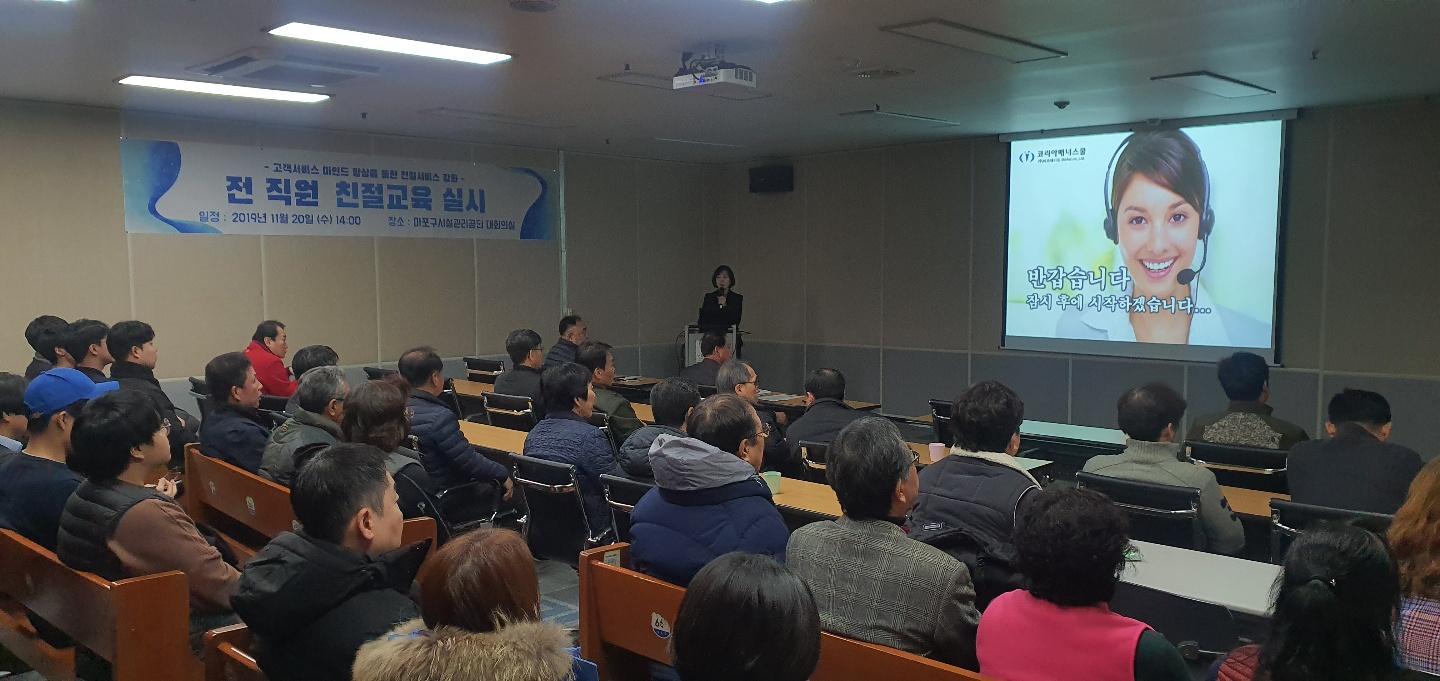 교육명 : 전 직원 친절교육 실시 교육일 : 2019년 11월 21일 |