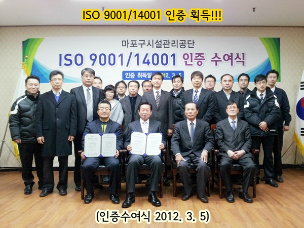 제목 | 마포구시설관리공단 ISO 9001/14001 인증 획득!! | ||