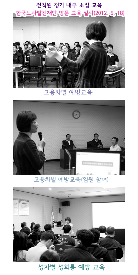 제목 | 전직원 소집 정기 내부교육(고용차별 예방 및 성희롱 예방교육 실시) | ||