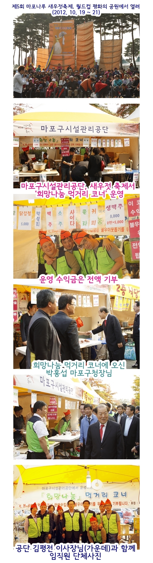 제목 | 마포구시설관리공단, ‘제5회 마포나루 새우젓축제’에서 ‘희망나눔 먹거리 코너’ 운영 | ||