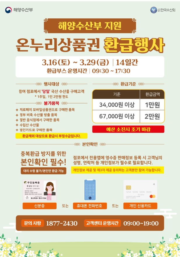(해양수산부) 당일 국산 수산물 온누리 상품권 환급행사(기간연장)